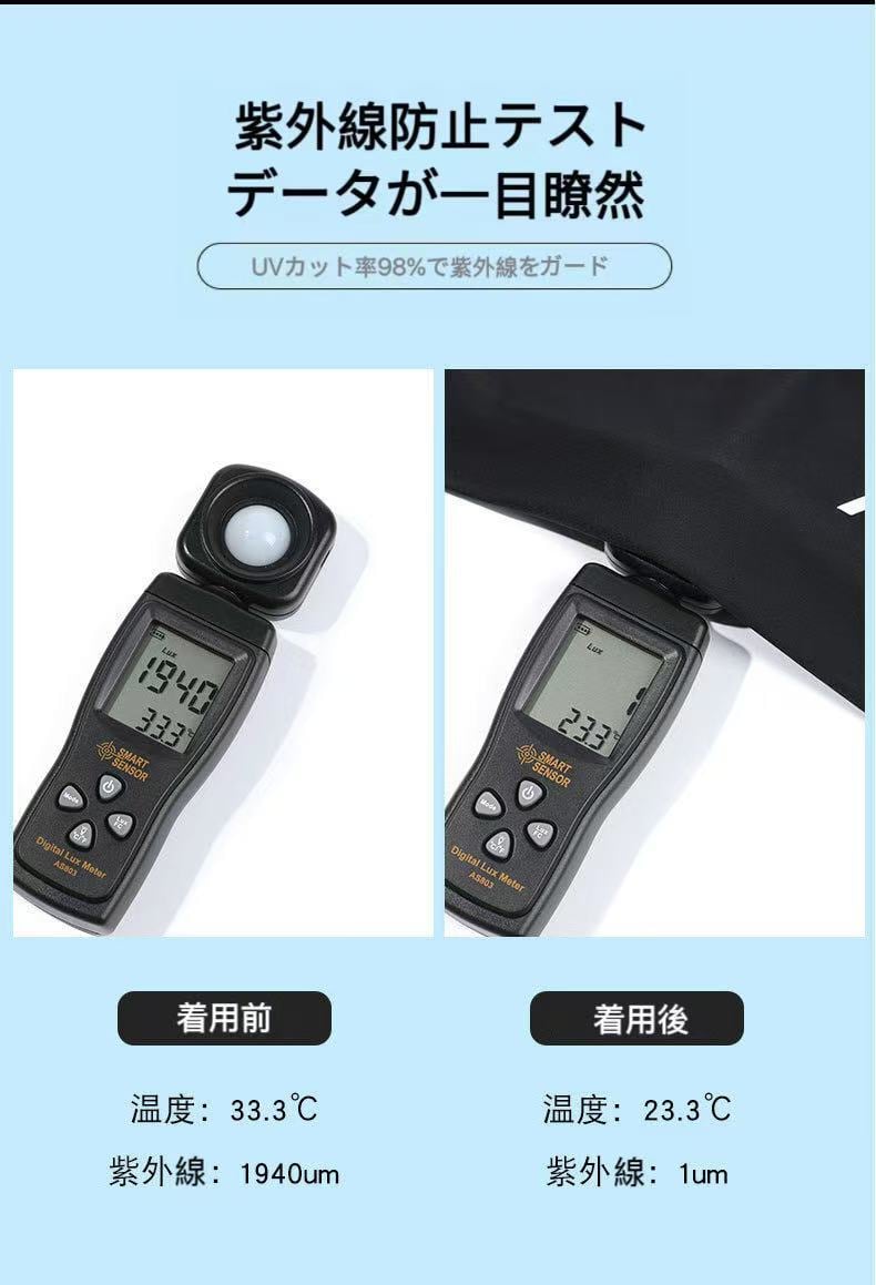 このアームカバーは、UVカット率99%、UPF50+で強力な紫外線対策を実現。